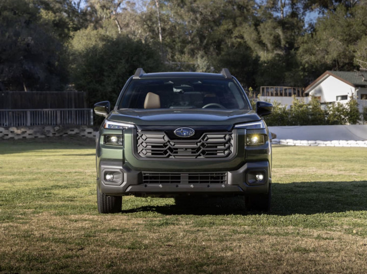 外观方面,全新斯巴鲁傲虎延续了品牌经典的跨界风格,整体造型硬朗且大气。前脸部分,大尺寸的六边形进气格栅搭配犀利的大灯组,营造出强烈的视觉冲击力。而大灯组内部采用了全新的光源设计,不仅提升了照明效果,还使车辆在外观上更具辨识度。此外,前保险杠的设计也进行了优化,线条更加流畅,与整车风格相得益彰。